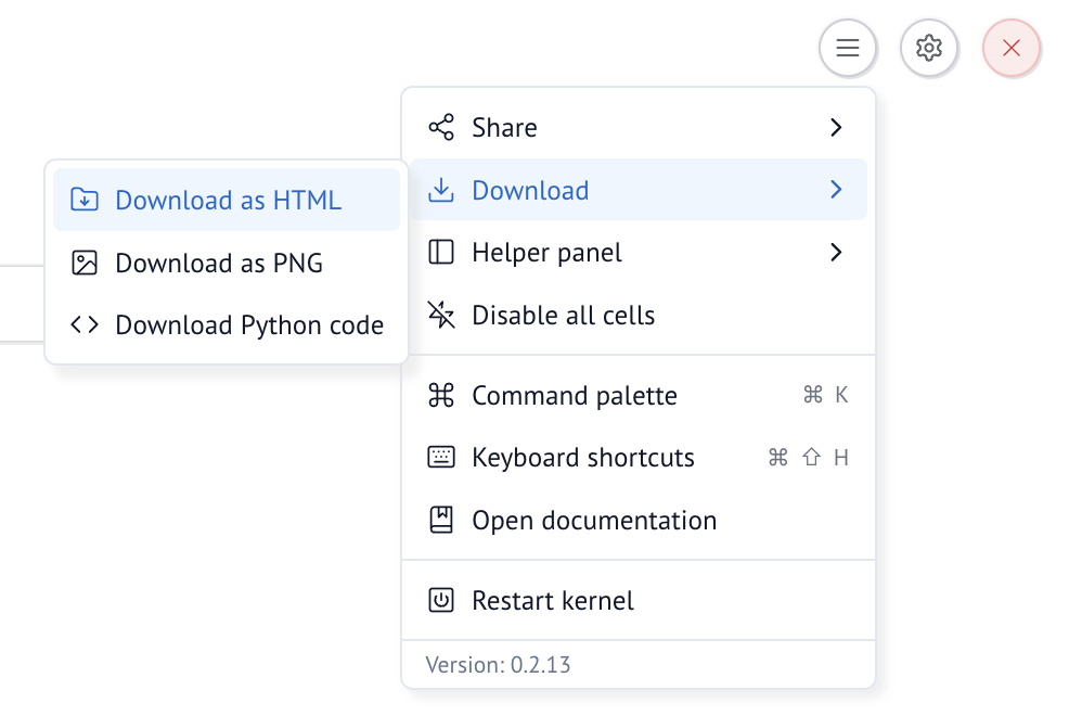 --mode: Choose betweenrun(read-only) oredit(allows editing)--output: Directory to save the HTML and required assets--show-code/--no-show-code: Whether to initially show or hide the code in the notebook